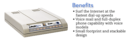 The affordable MultiModem?ZBA corporate-user modem provides high-speed data transfers and fax capabilities for small businesses, telecommuters, and SOHO users. Features like remote configuration, call>>>