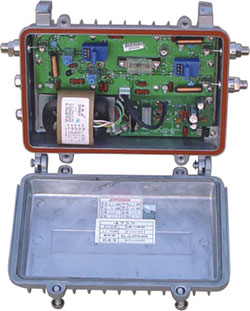 7134型双向放大器采用防水铸铝外壳,适用于野外工作;有单路,两路分支或分配输出三种方式可选;可以水平基座或悬挂安装。型具有可调均衡和可调衰减功能。